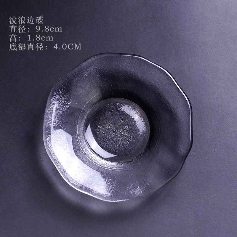 Thickened heat-resistant glass cup holder, coaster, small tray, handmade versatile transparent saucer, kung fu tea set, cup and saucer