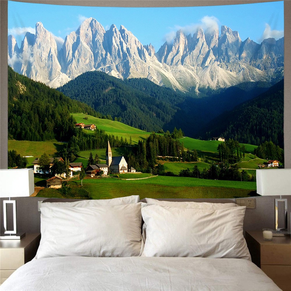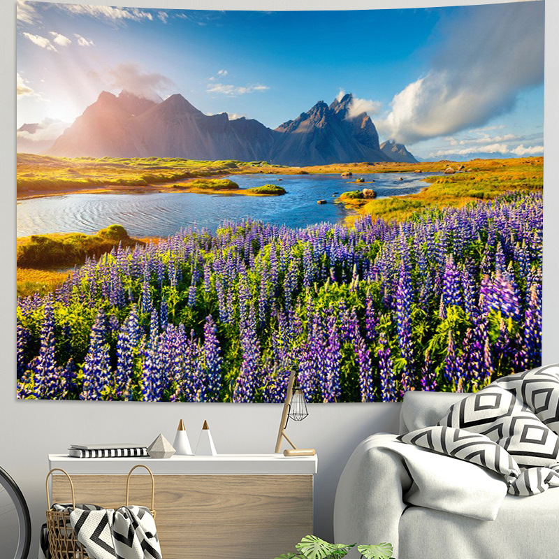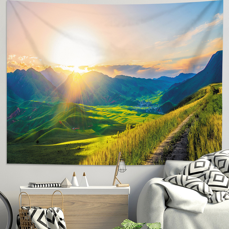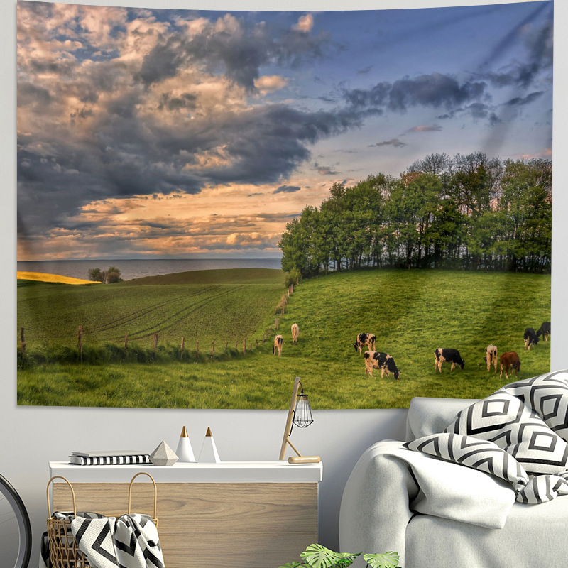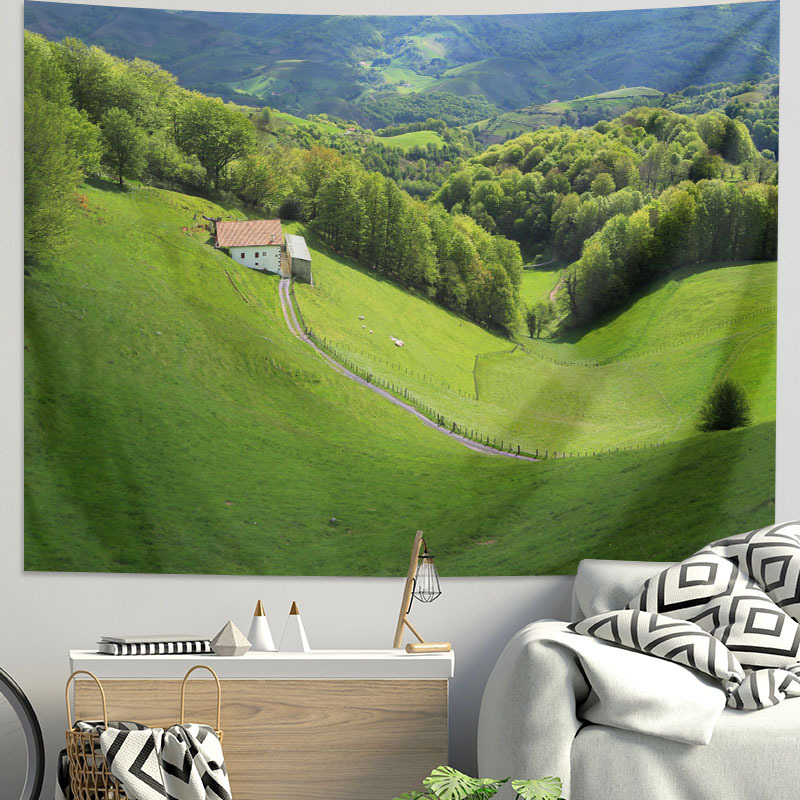 Wholesale Fresh Grassland Scenery Background Cloth for Bedroom Dormitory Renovation Wall Decoration Poster Wall Cloth Hanging Fabric Forest Hanging