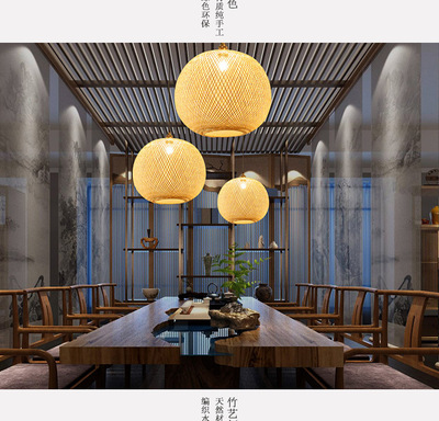 Southeast Asian chandelier, creative bamboo lamp, tea room stairwell ball lamp, new Chinese Zen style B&B restaurant lighting