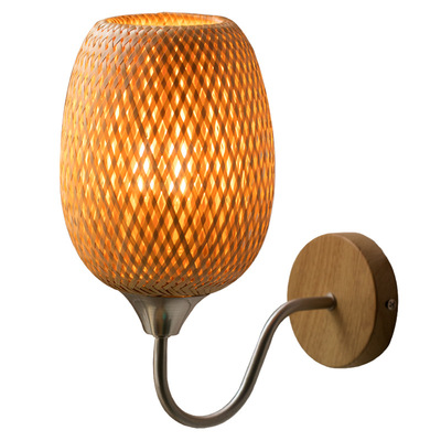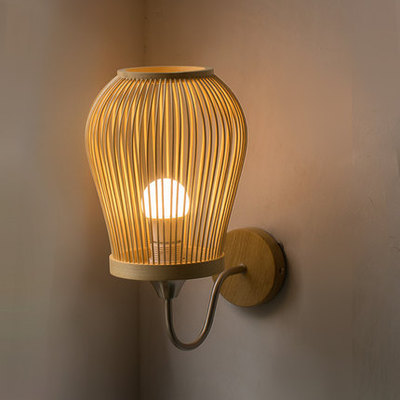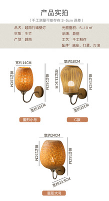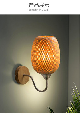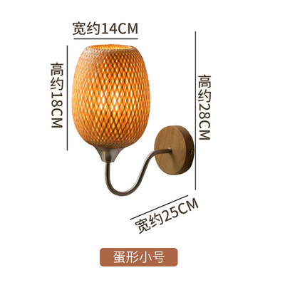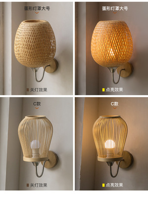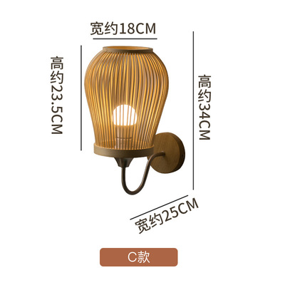 New Chinese Style Bamboo Woven Wall Lamp, Japanese Style Bedroom Bedside Lamp Zen Corridor Tea Room Passage Lamp Rural Decor Lamp