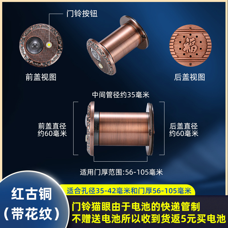 Specifications: Pattern with doorbell - aperture 35-42 mm and door thickness 56-105 mm (without battery, no refund of 5 yuan)