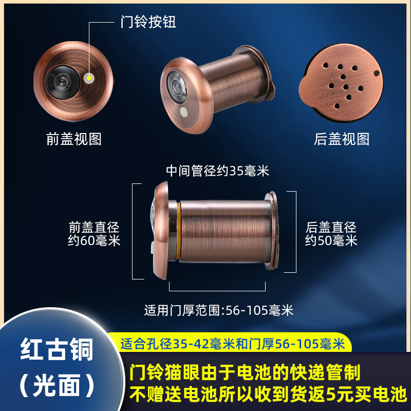 Specifications: Smooth surface with doorbell - aperture 35-42 mm and door thickness 56-105 mm (without battery, no refund of 5 yuan)