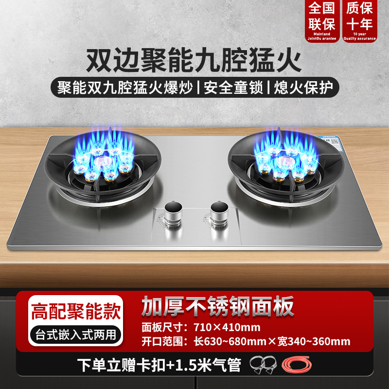 Flagship energy-gathering model, nine-gun fierce fire stove + stainless steel + power display + bilateral timing
