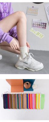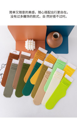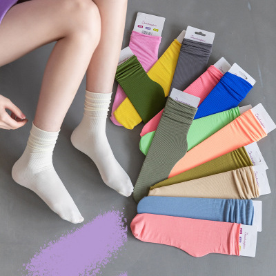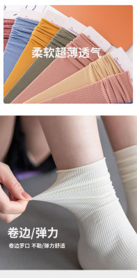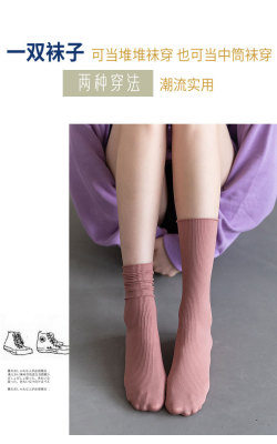 春夏女薄款冰冰襪純色日系堆堆襪復古卷邊jk潮襪天鵝絨襪子女批發