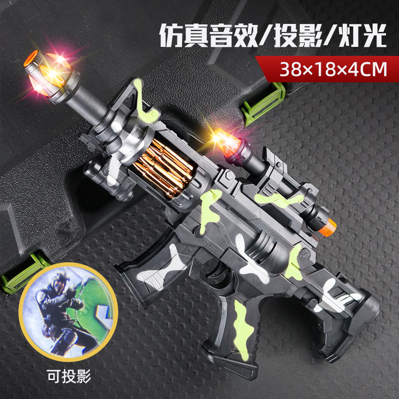 Children's toy gun, electric light-up toy, vibration simulation, eight-tone gun, projection hand gun, camouflage machine gun, assault rifle