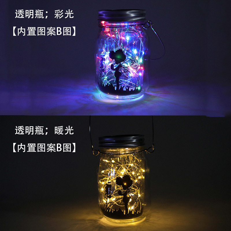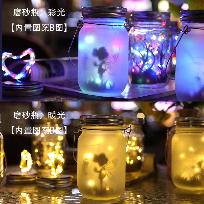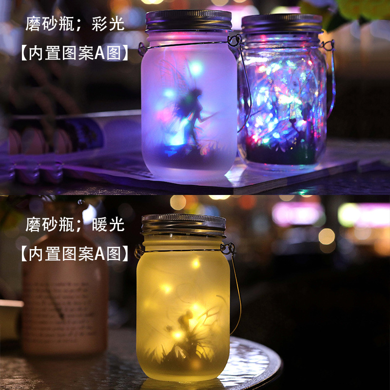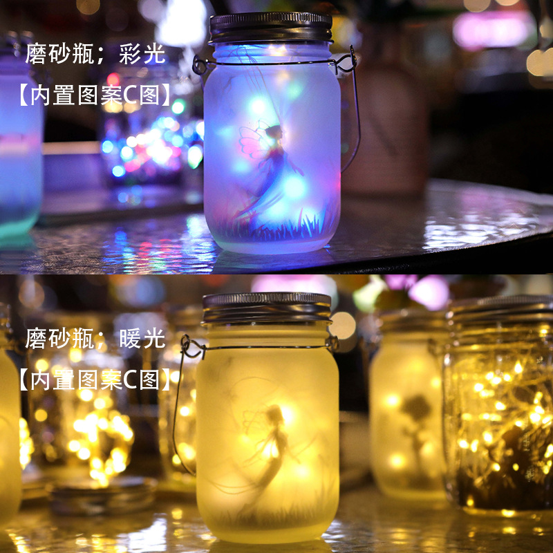 Solar Mason Jar Light LED Firefly Lantern Courtyard Crack Decorative Glass Bottle Light Lawn Landscape Light