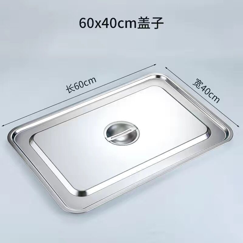不鏽鋼平底方盆加深長方形帶蓋自助餐盤烤魚盤托盤大號方盒子