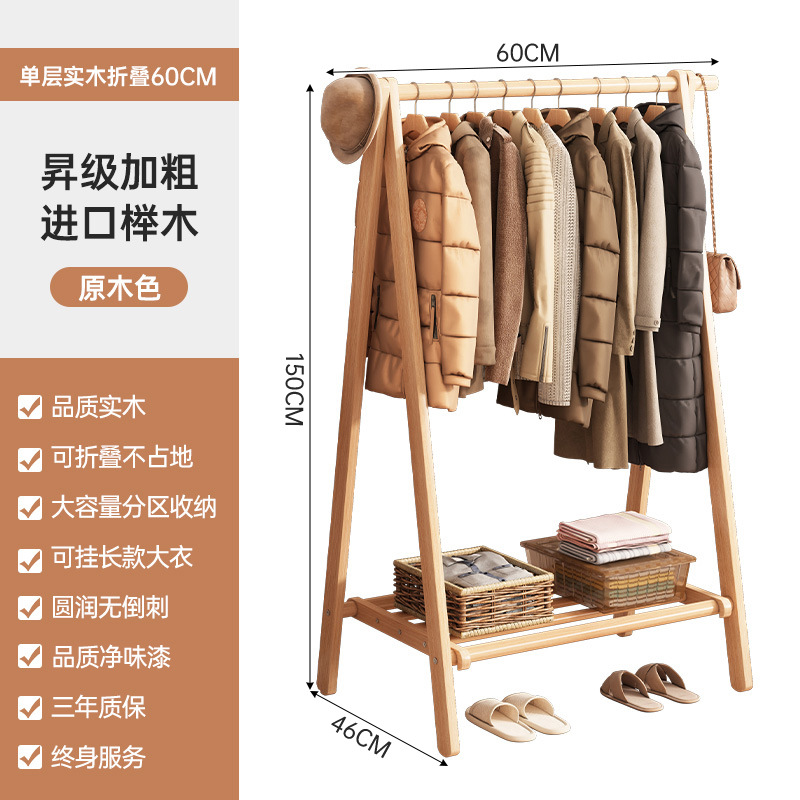 Solid wood clothes hanger bold style home bedroom simple vertical coat rack indoor room storage hanging clothes hanger floor-standing