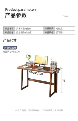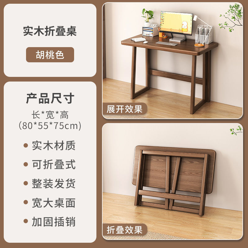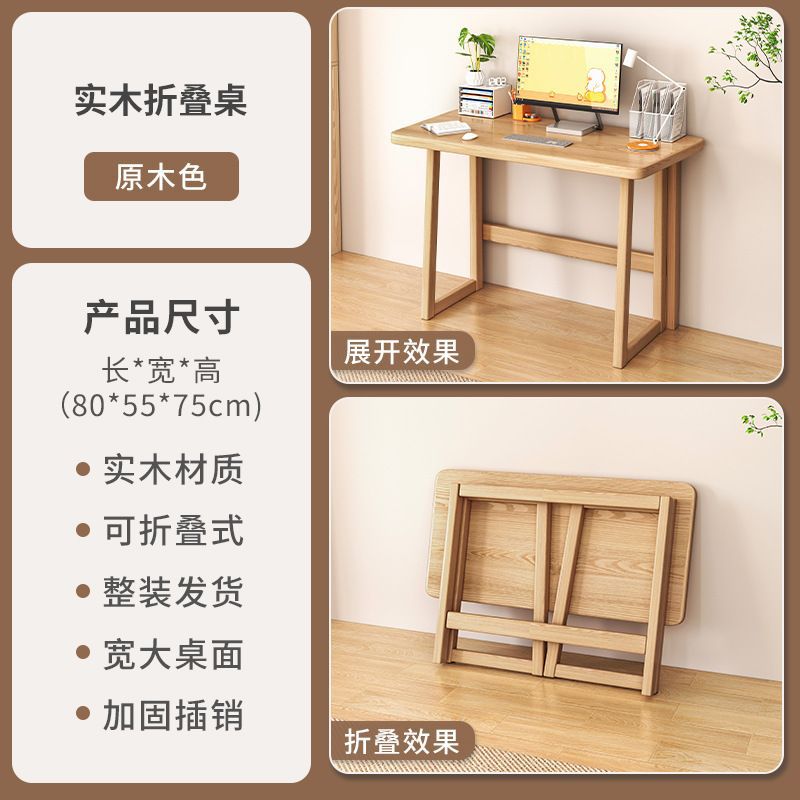 Solid wood folding table computer table small apartment foldable table homework student home youth study table