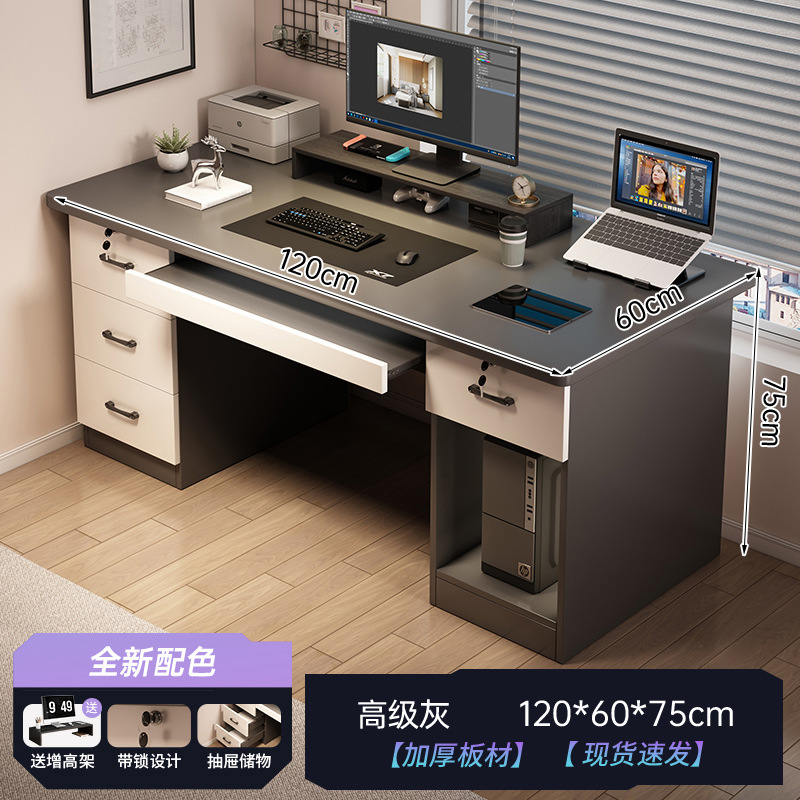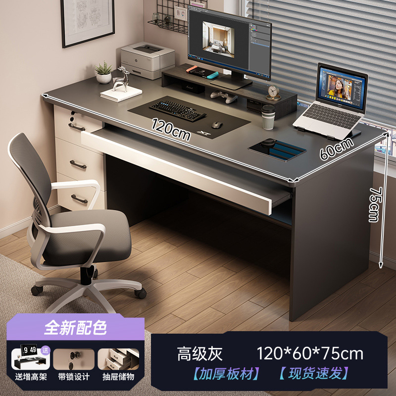 [Table and chair combination - free elevated shelf] High-grade gray 120CM (three draws)