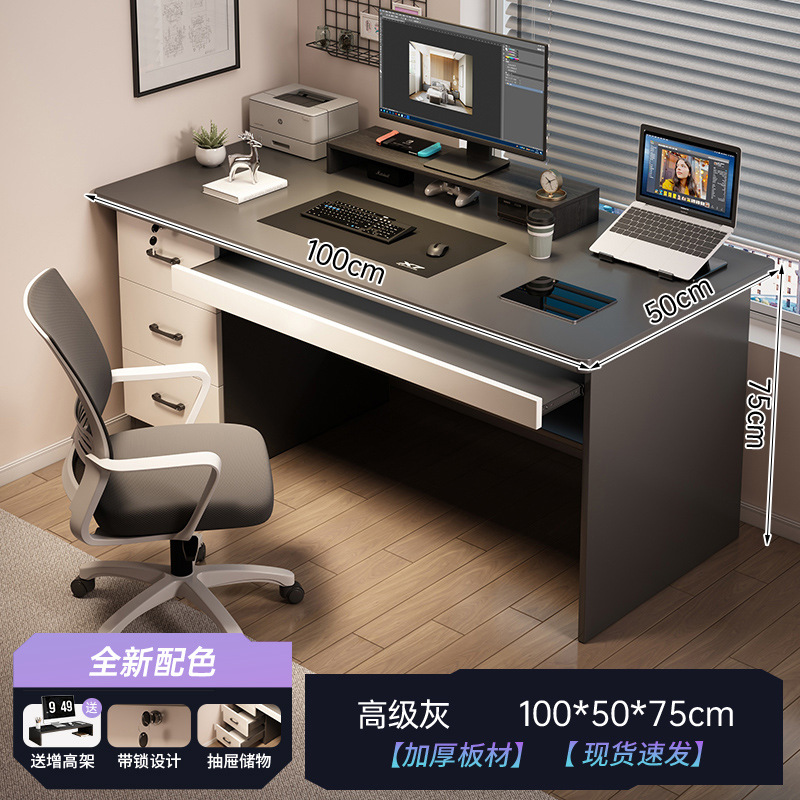 [Table and chair combination - free elevated shelf] High-grade gray 100CM (three draws)