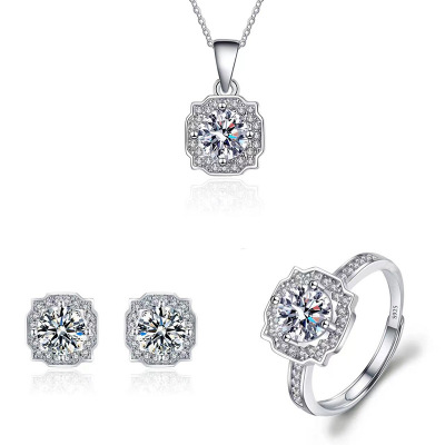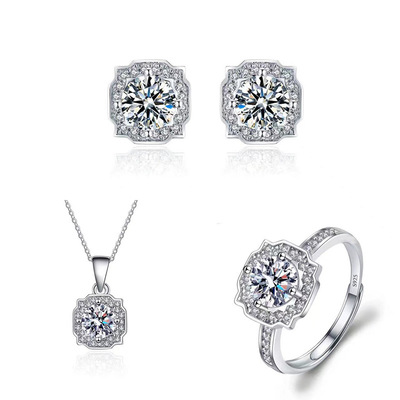 跨境歐美風氣質新款戒指耳環吊墜簡約小眾女生項飾仿真莫桑鑽飾品