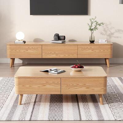 Nordic solid wood TV stand and coffee table set modern minimalist home small apartment living room ash wood original wood style coffee table