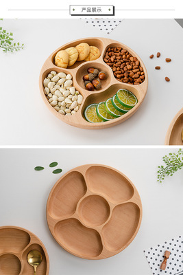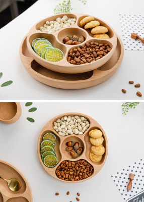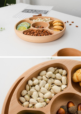 Creative Multi-Compartment Oak Fruit Tray Wood Divided Fruit Platter Living Room Home Use Candy Nut Plate