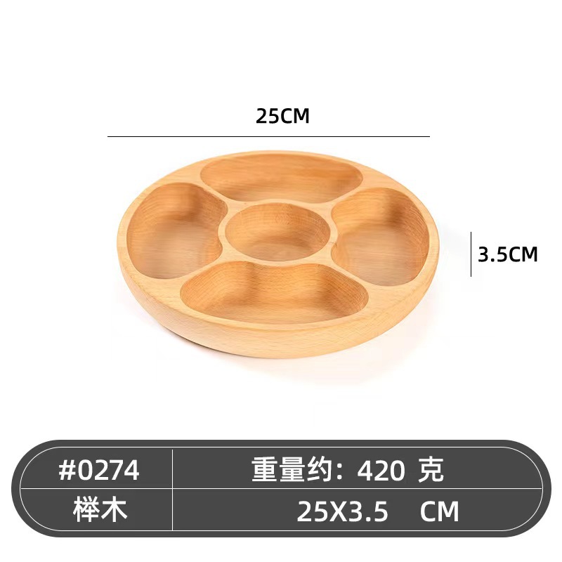 Elm wood 25cm five-compartment tray