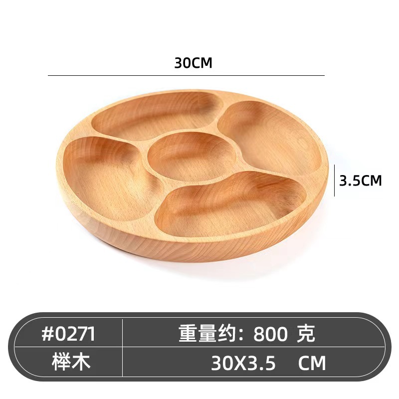 Elm wood 30cm five-grid tray