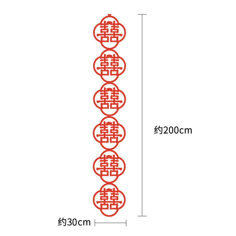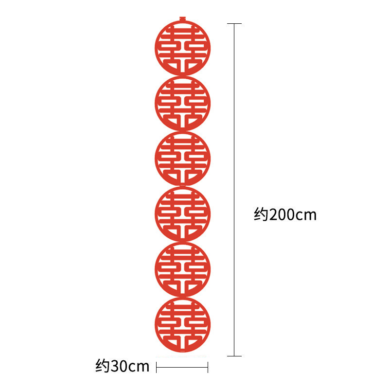 Wedding room decoration long auspicious character hanging ornaments sticker for marriage decoration happy event wedding backdrop wall sticker paper wedding celebration scene decoration