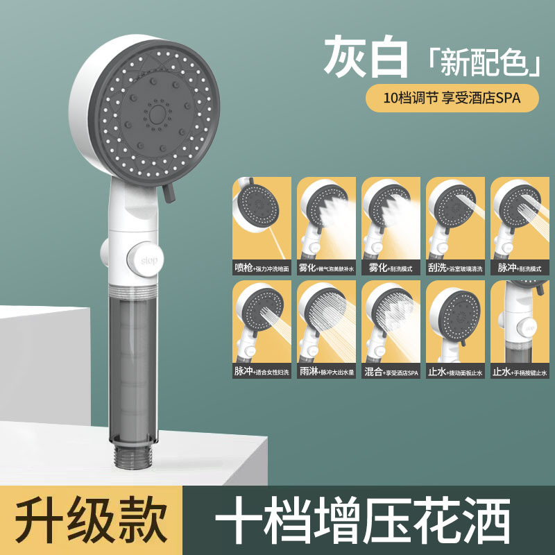 大出水噴霧五檔多功能增壓淋浴花灑噴頭加壓浴霸水龍頭家用