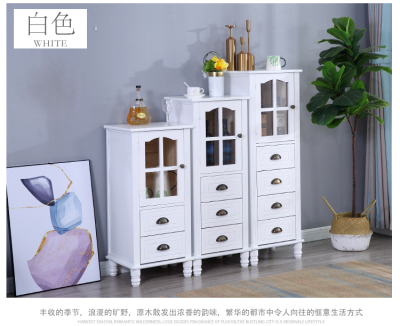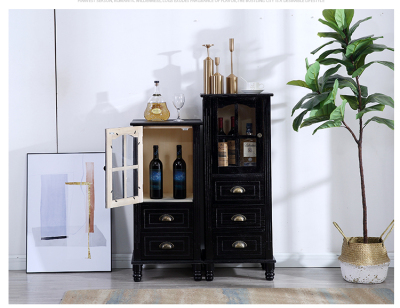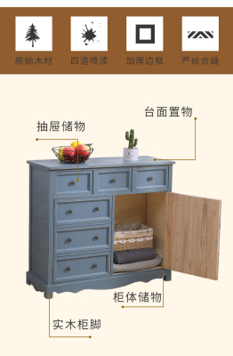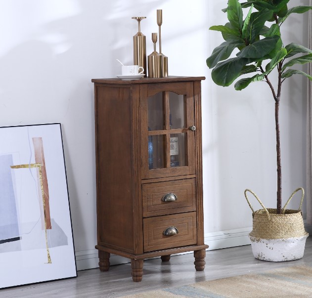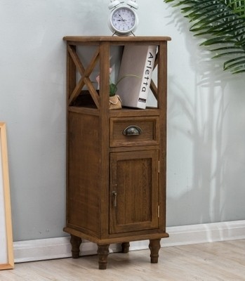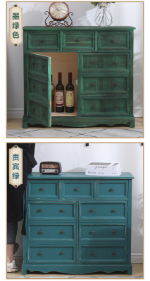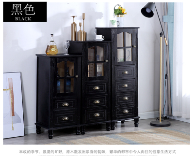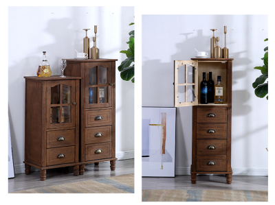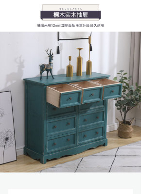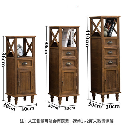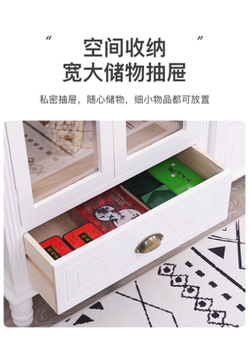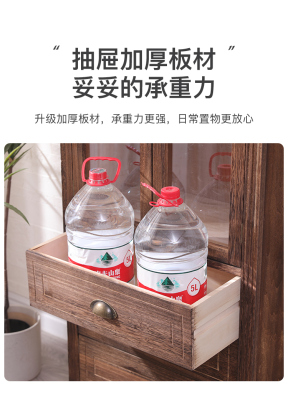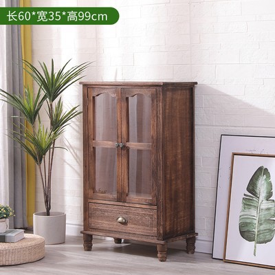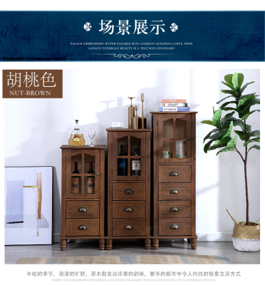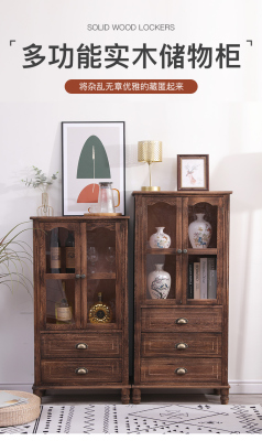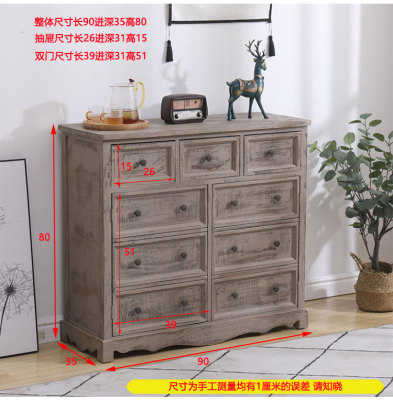 9WOR復古美式實木斗櫃收納櫃多功能帶門靠牆客廳電視櫃儲物小櫃裝
