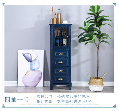 復古藍四抽帶門