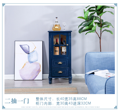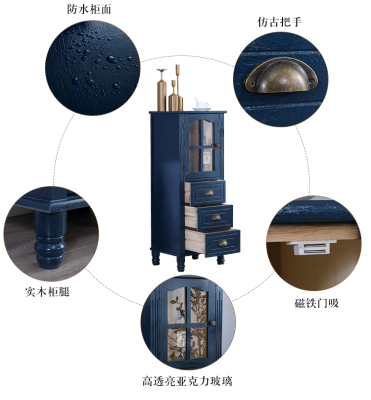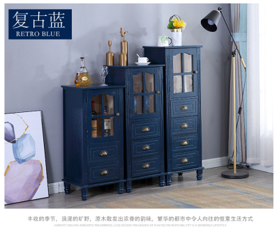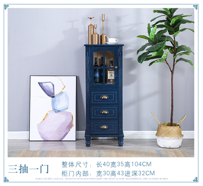 復古藍三抽帶門