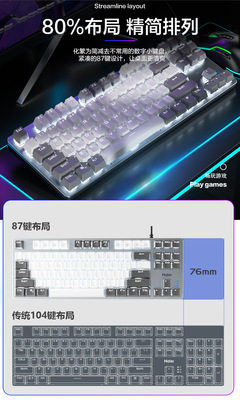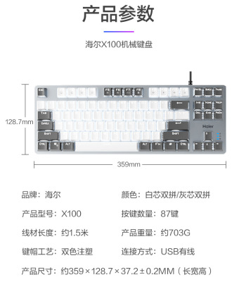 Haier true mechanical keyboard 87 keys [blue axis white core double spelling] metal panel