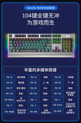 AOC 410 gaming keyboard mechanical keyboard wired USB green axis red axis tea axis black axis 104 key mechanical keyboard