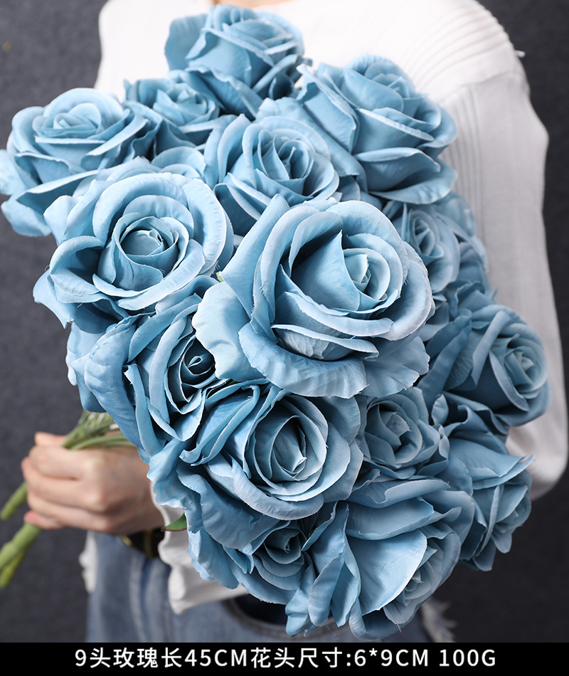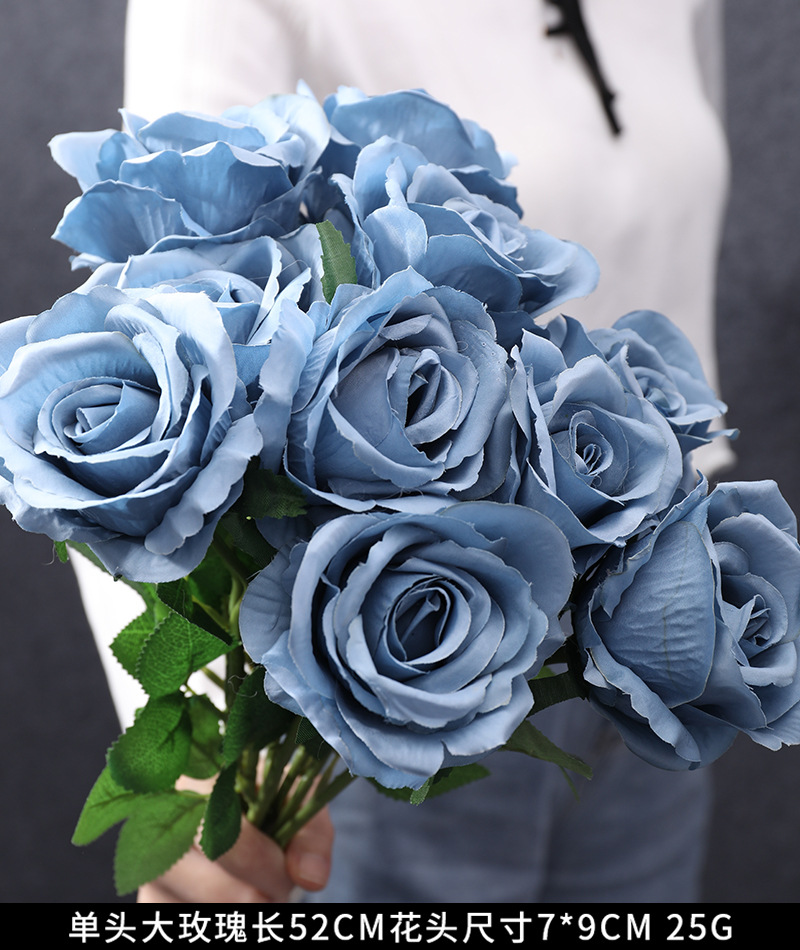 藍色婚慶仿真花假花 婚禮堂路引插花裝飾花藝霧霾藍絹花擺件批發