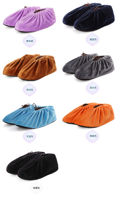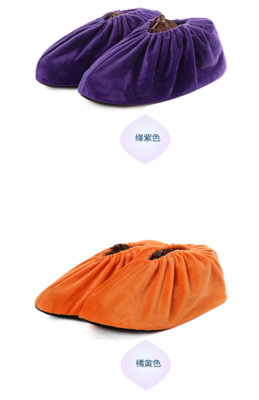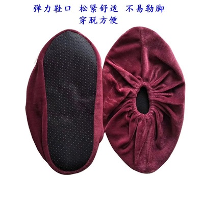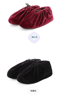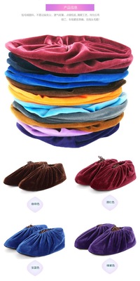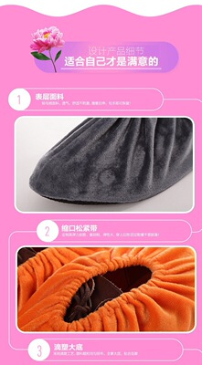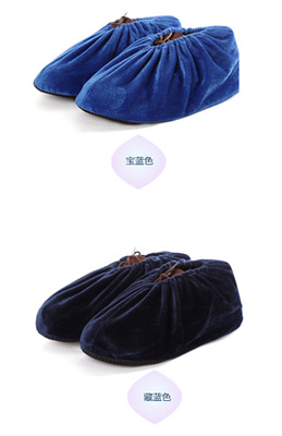 Indoor household soft non-slip velvet shoe covers washable glass plank road computer room office shoe covers embroidered words