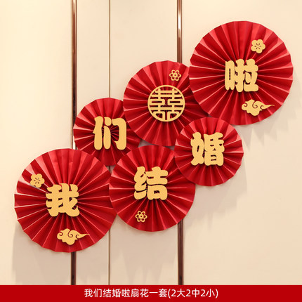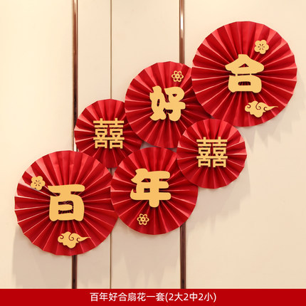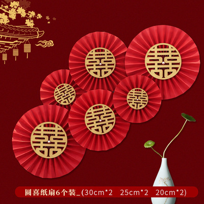 Wedding room paper fan flower decoration wedding word folding fan paper flower wedding round fan new house scene layout wedding supplies