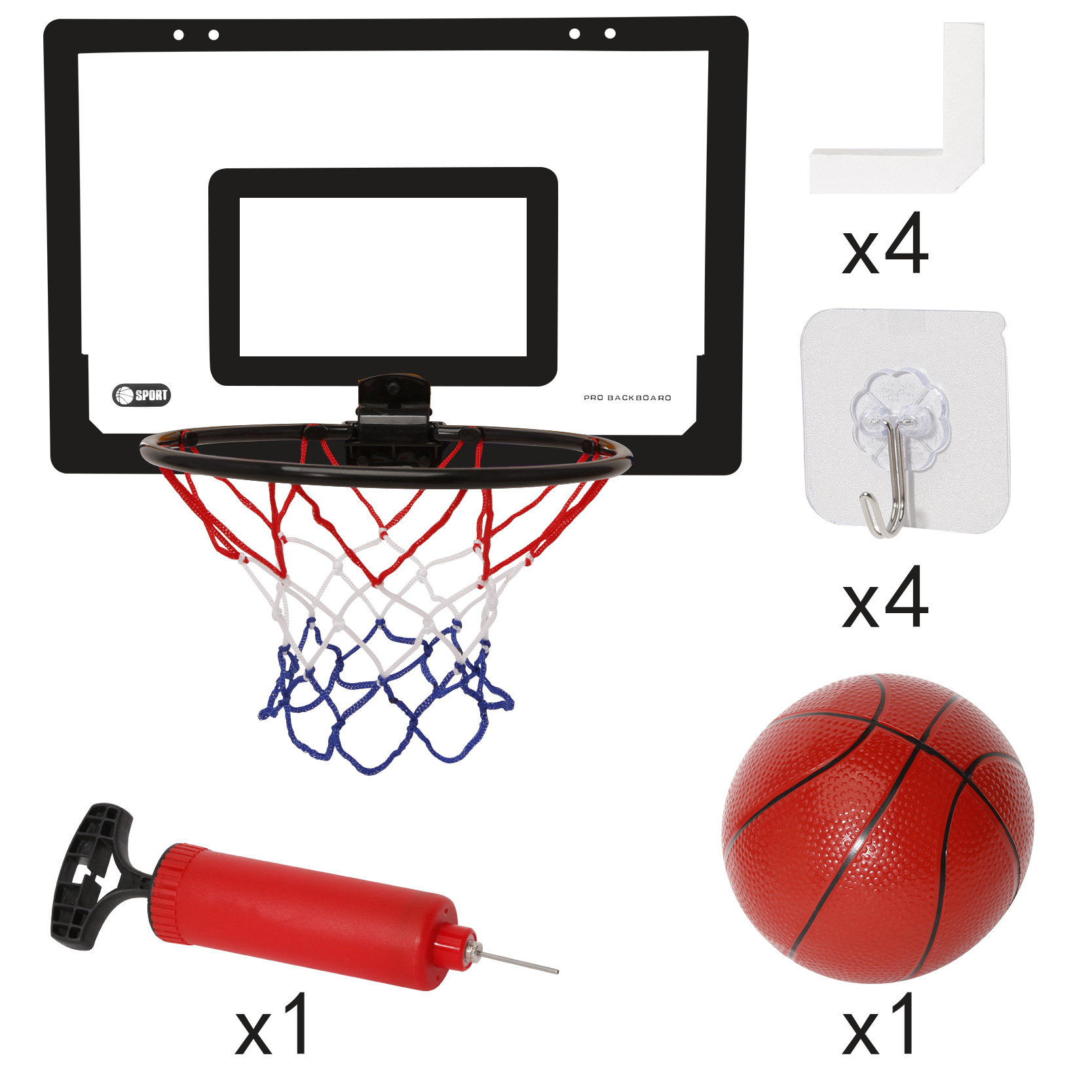 Folding Red Basketball Rim - Free Ball + Pump + 4 Hooks