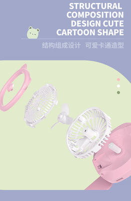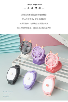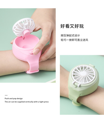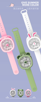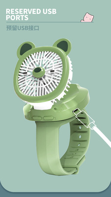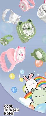 2024 New Cartoon Watch Fan USB Mini Charger Student Outdoor Handheld Small Fan Children's Day Gift
