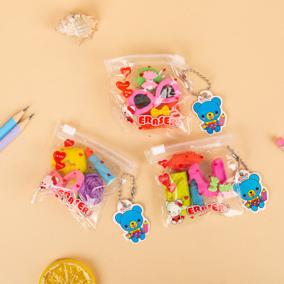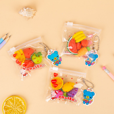 拉鏈袋裝橡皮3D立體動物 水果 蛋糕橡皮擦學生獎品六一獎勵小禮品