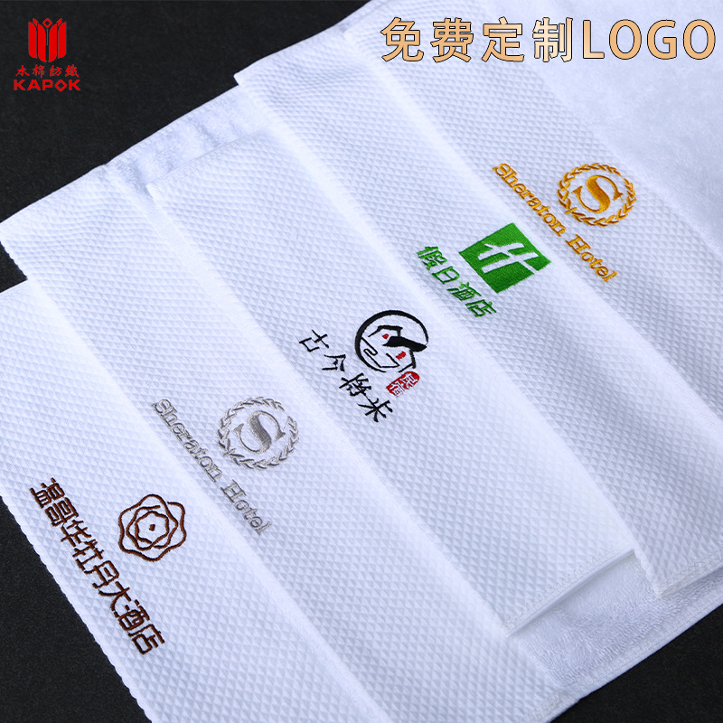 Pure Cotton Hotel Towels Absorbent Guest Room Bath Towel Set Embroidered Logo 100% Cotton White Towels Thick Hotel Towels