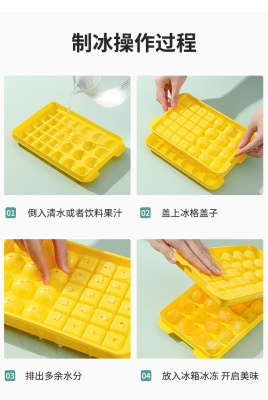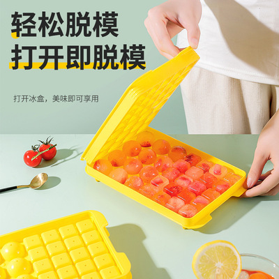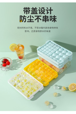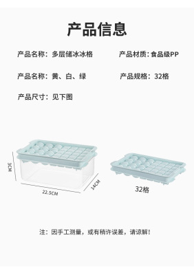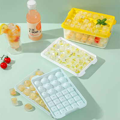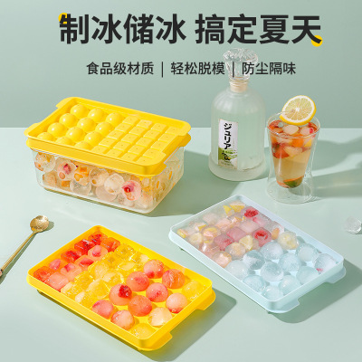 Two-in-one ice cube tray square ice grains making round ice ball grid ice shovel double-layer with lid pressure ice storage box