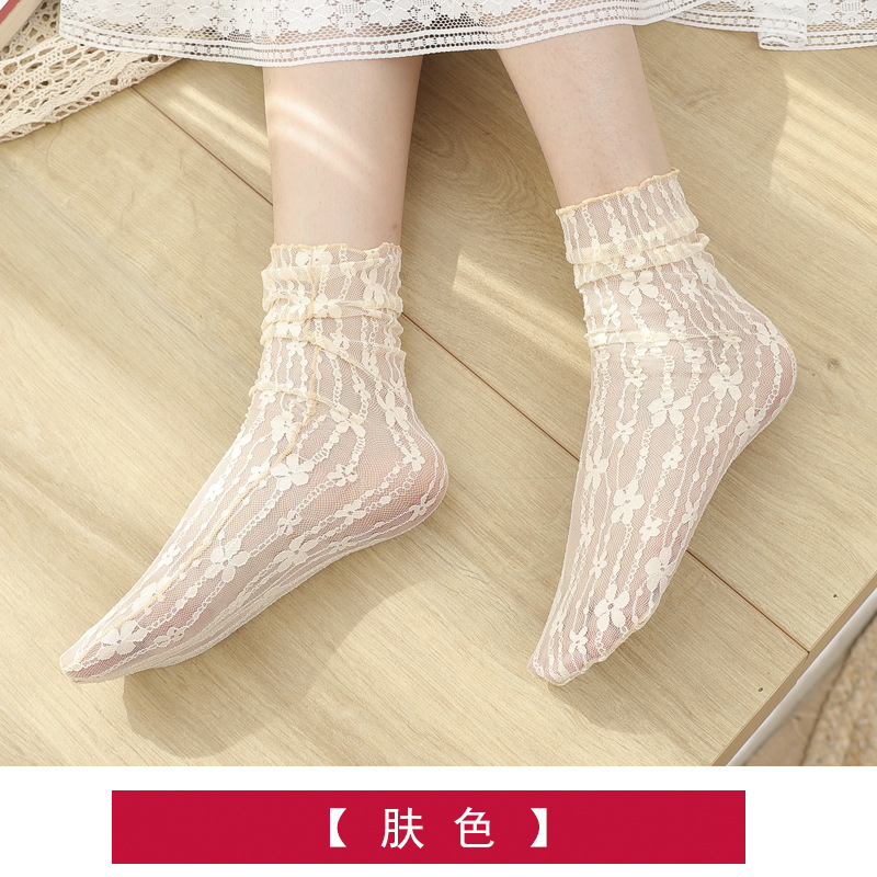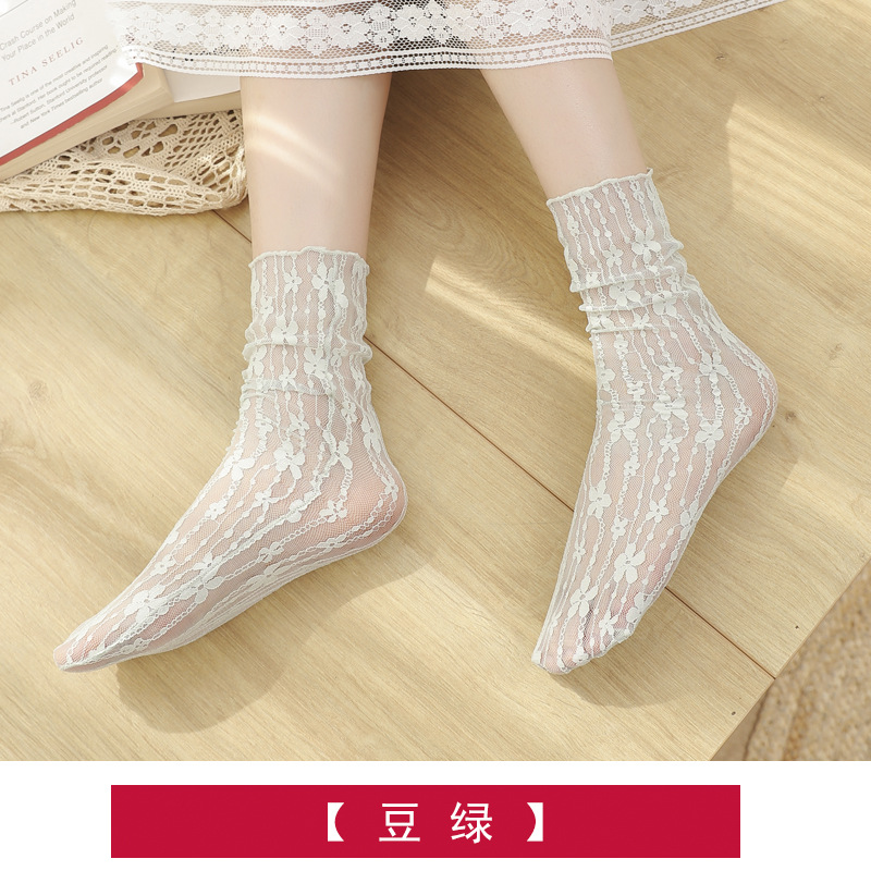 Lace Flowered Socks for Women Spring and Autumn Long Tube Mesh Summer Thin High Tube Sexy Versatile Breathable Pile Socks Wholesale