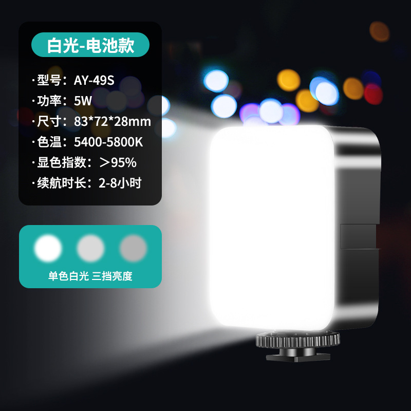 Three-color LED light + hot shoe one-piece clamp