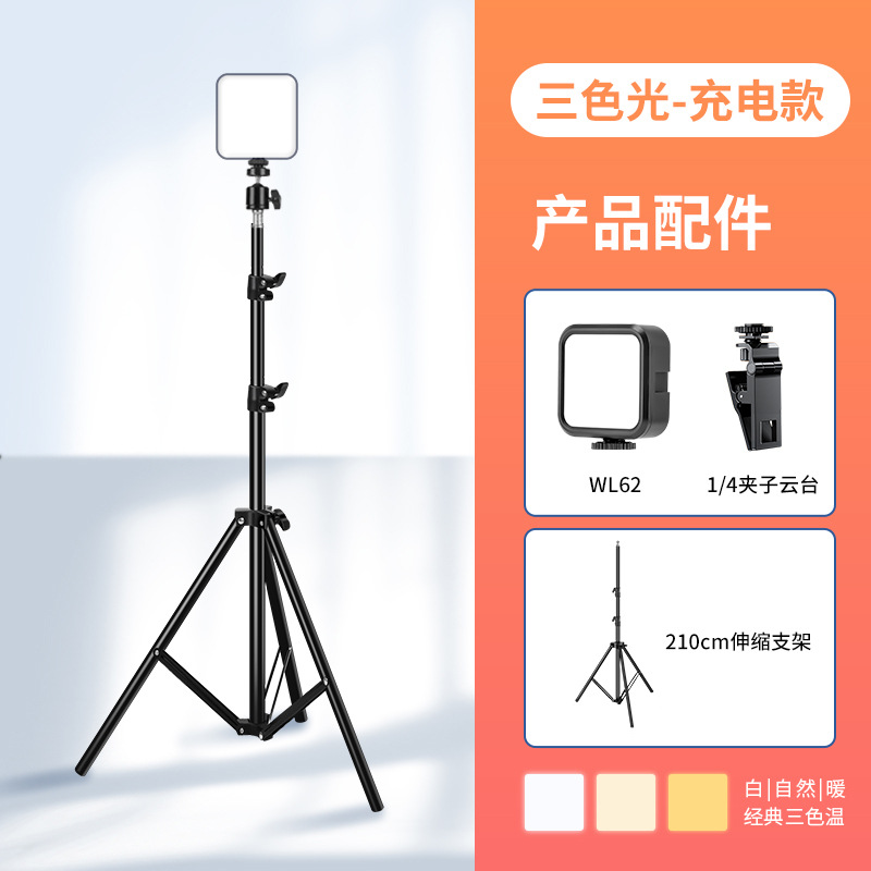 Three-color LED light + 210cm telescopic stand + clip