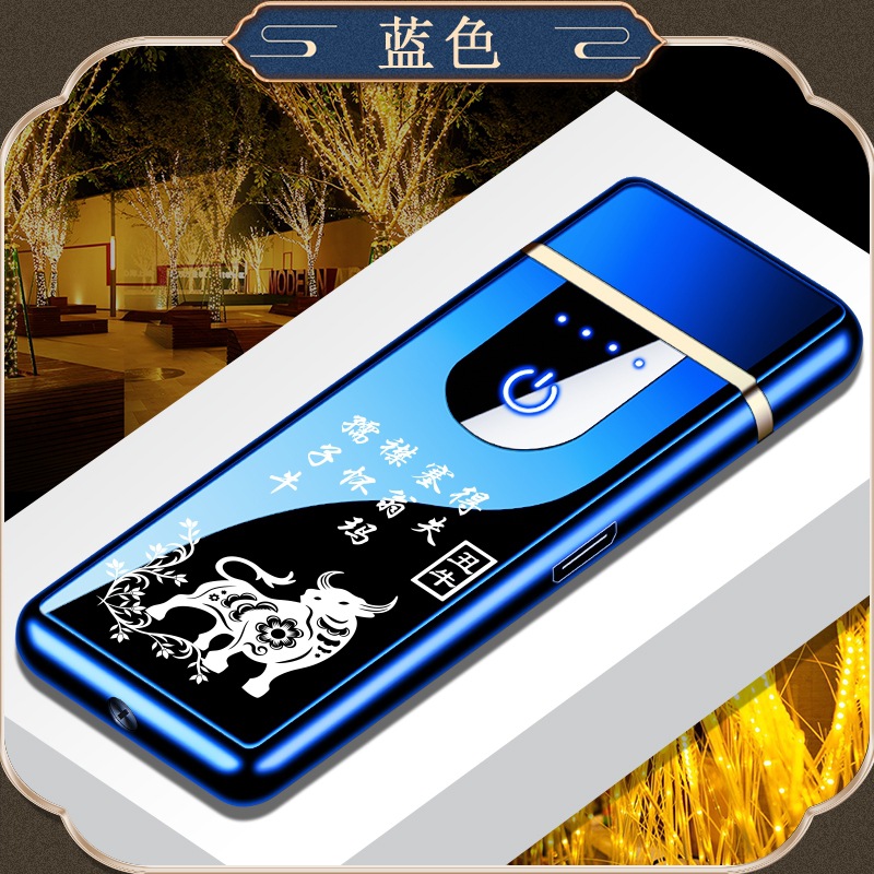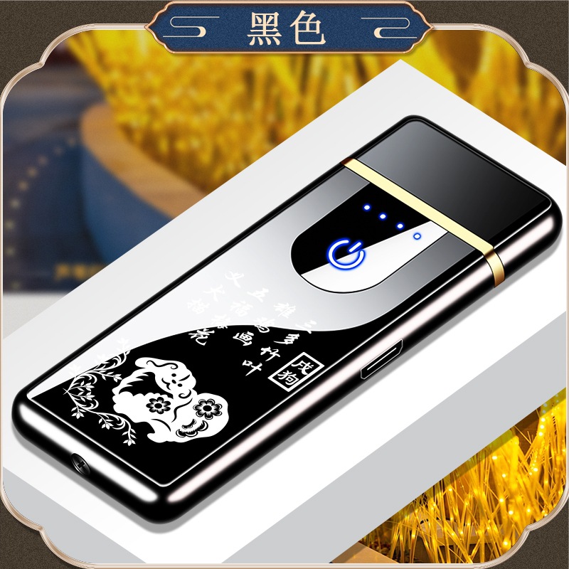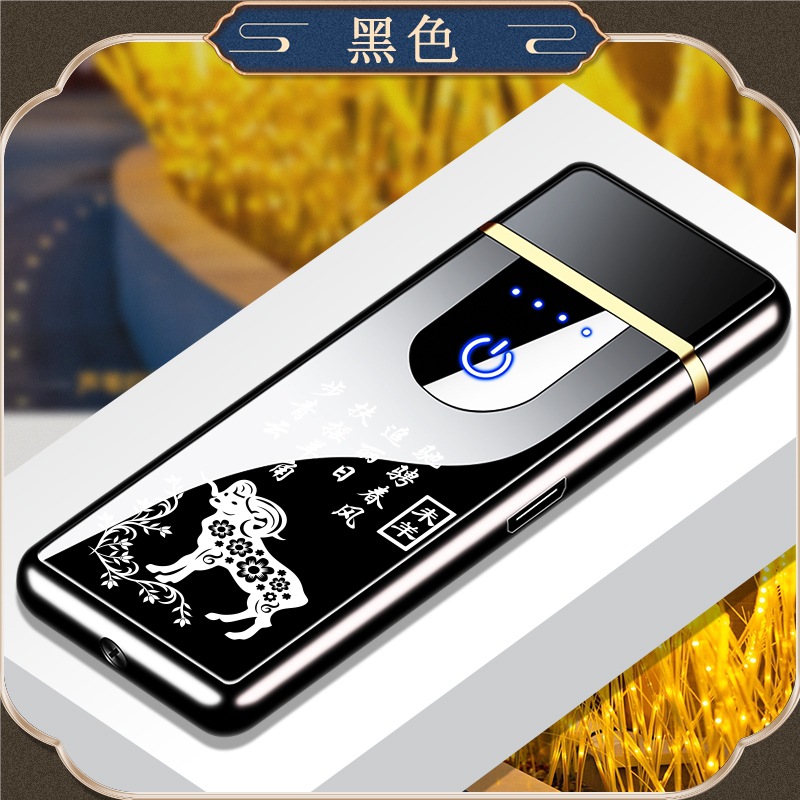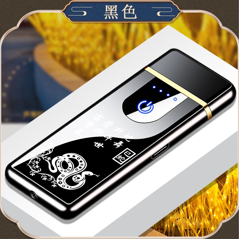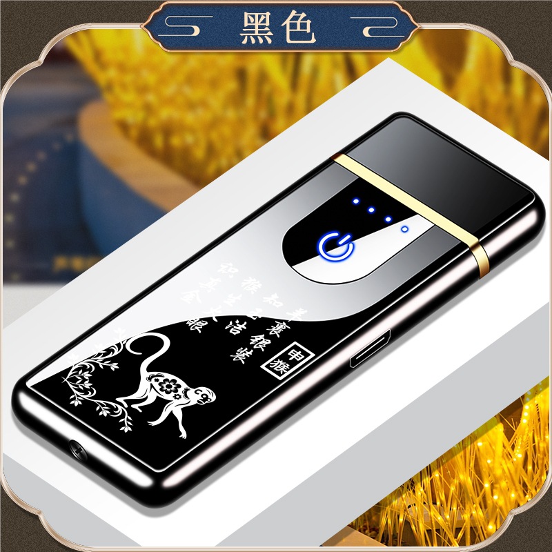 Custom Logo Wholesaler Touch-Sensitive Zinc Alloy Chinese Zodiac Charging Lighter USB Windproof Lighter