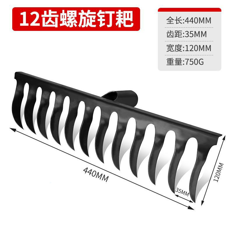 Specification: Manganese steel spiral tooth rake 12 teeth + 1.2-meter wooden handle