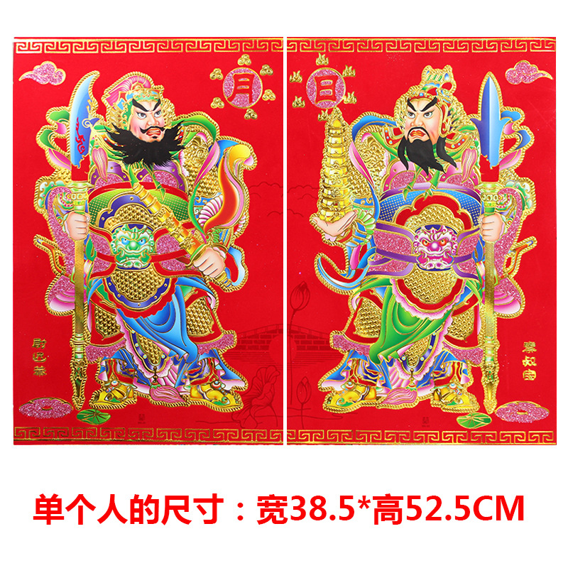 3D velvet pasting of door gods with good fortune