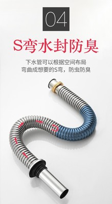 Stainless Steel Sink Drain Pipe, Extended S-Bend Anti-Odor Sink Basin Accessories, Sink Drain Pipe, Anti-Mouse Bite