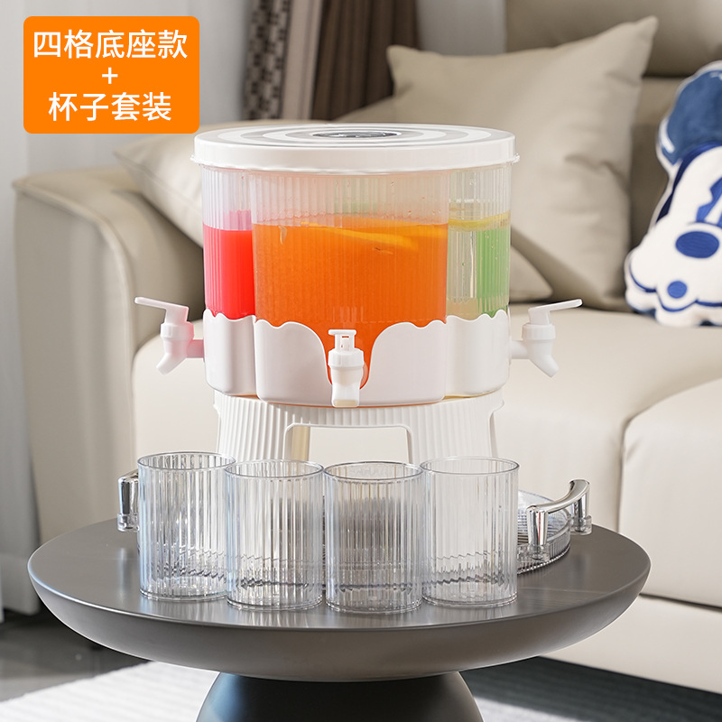 Rotating Cold Water Bucket Glacial Pattern Divided PP Beverage Milk Flower Tea Household Four-Compartment Water Dispenser with Faucet Cold Water Jug Set