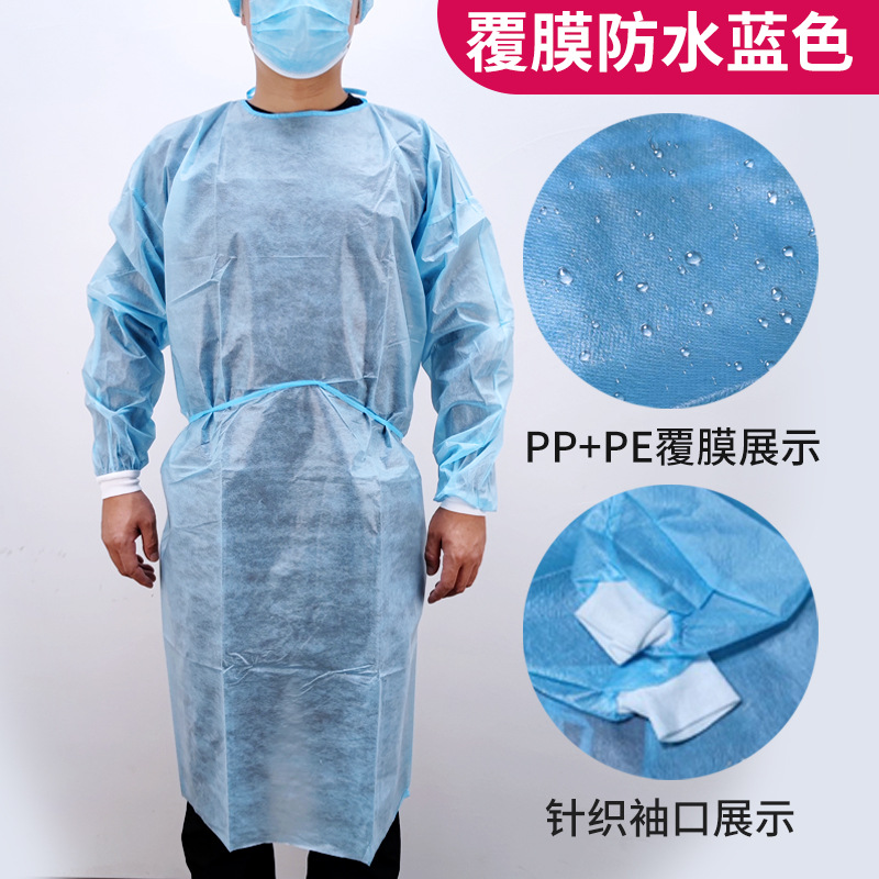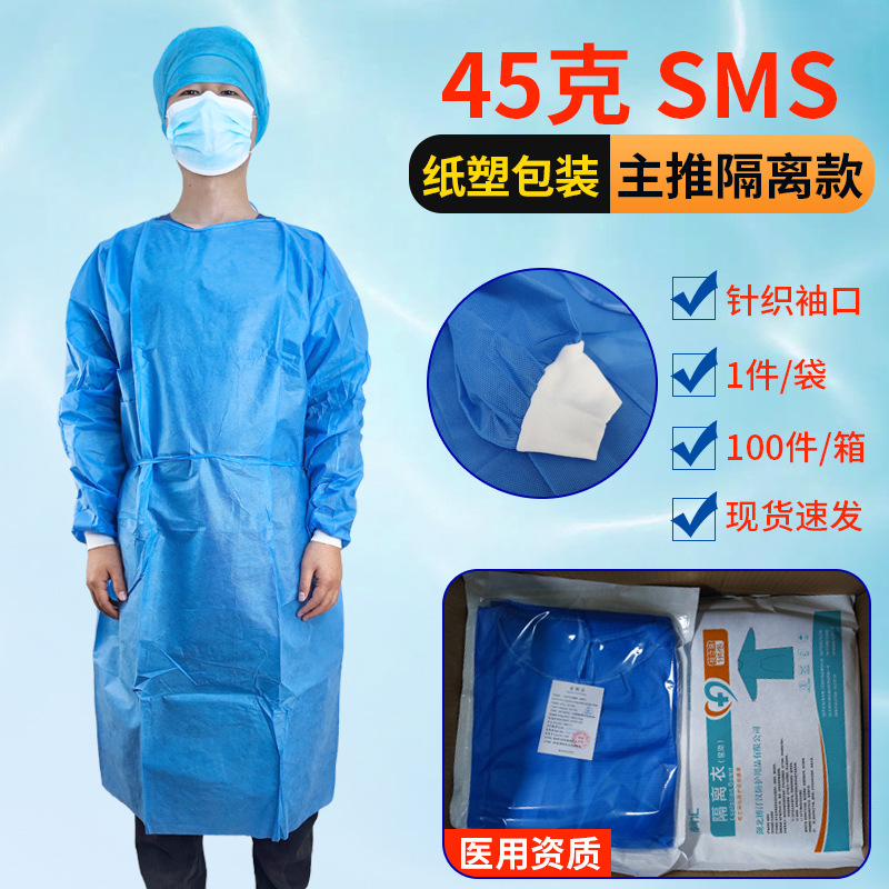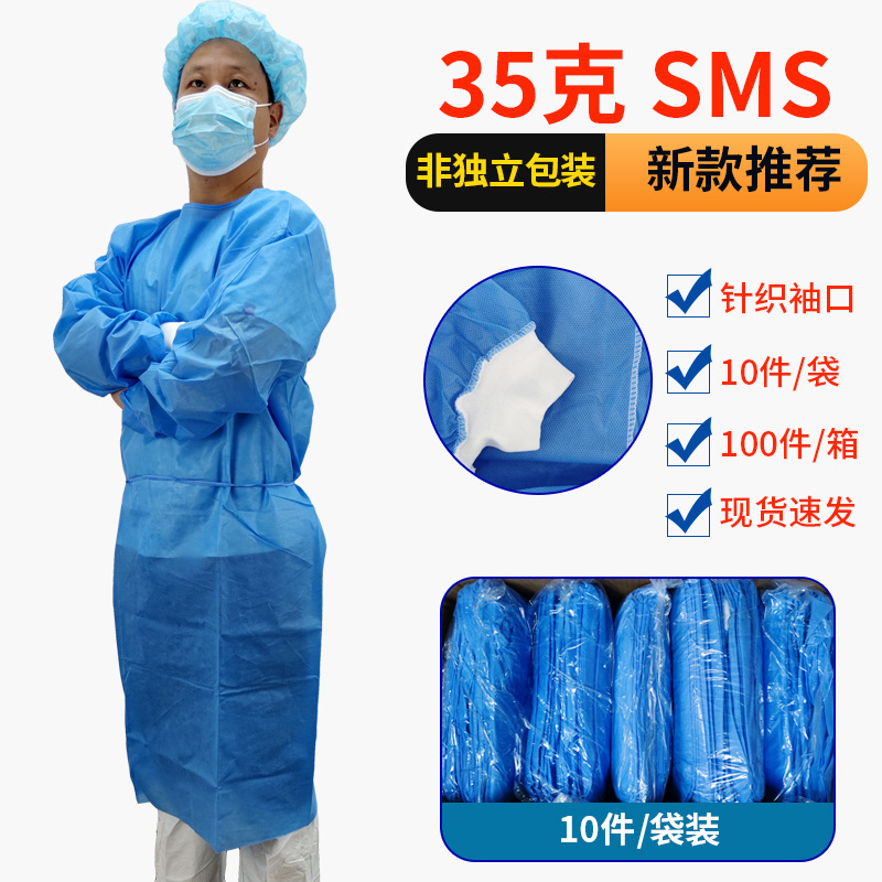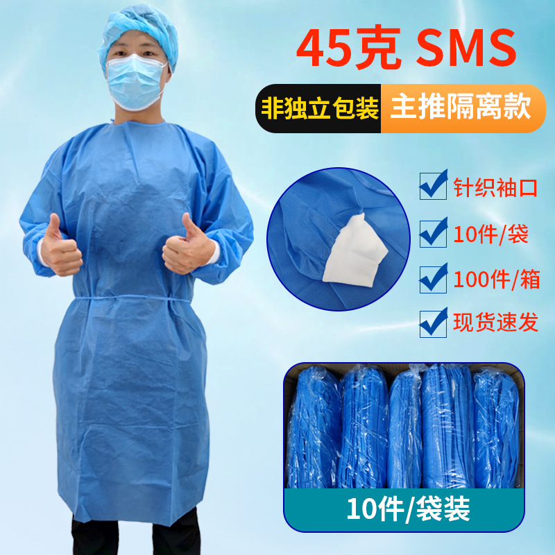 Disposable Isolation Suit SMS Protective Suit Dustproof Non-woven Isolation Suit Blue Knitted Cuff Reverse Wear Wholesale