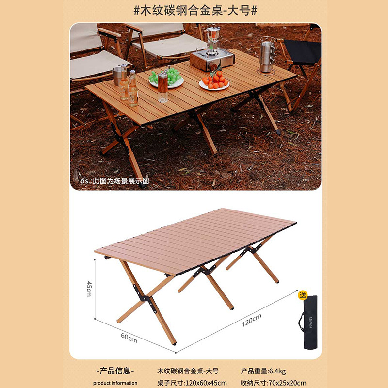 Lightweight Carbon Steel Wood-Tone Egg Carton Table - 120cm