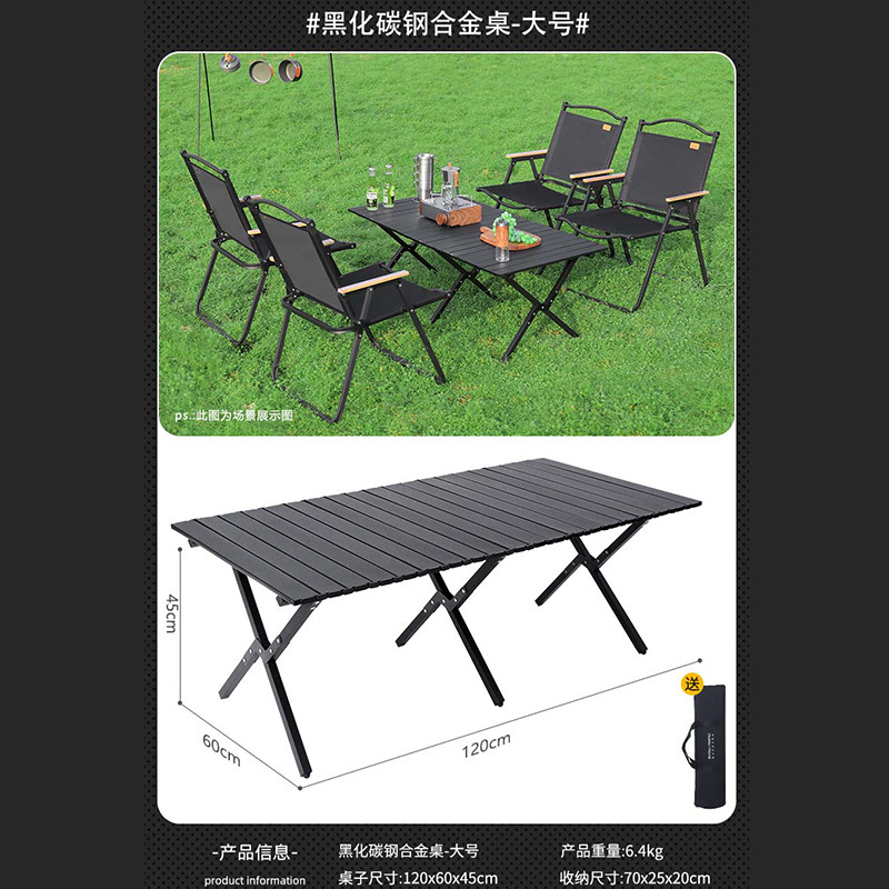 Lightweight Carbon Steel Black Egg Roll Table - 120cm
