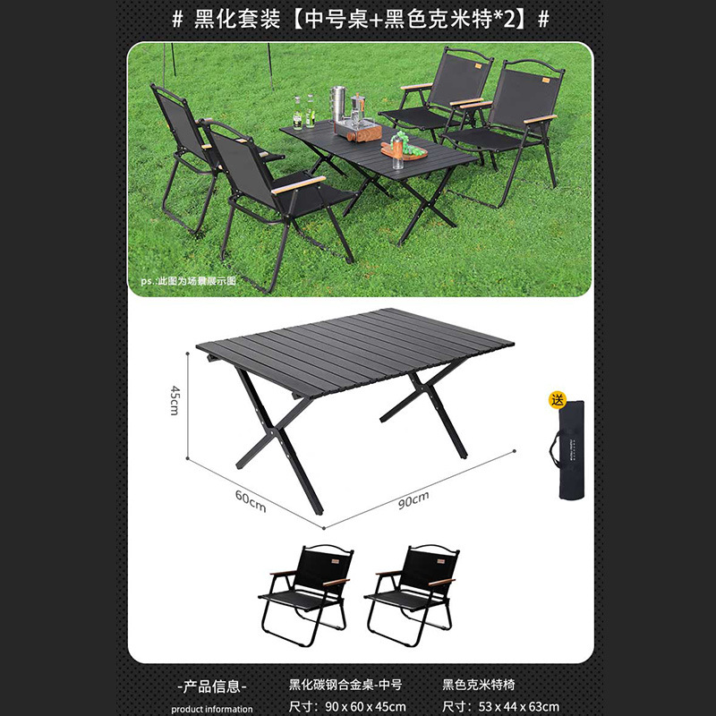 Lightweight Carbon Steel Black Eggroll Table - 90cm