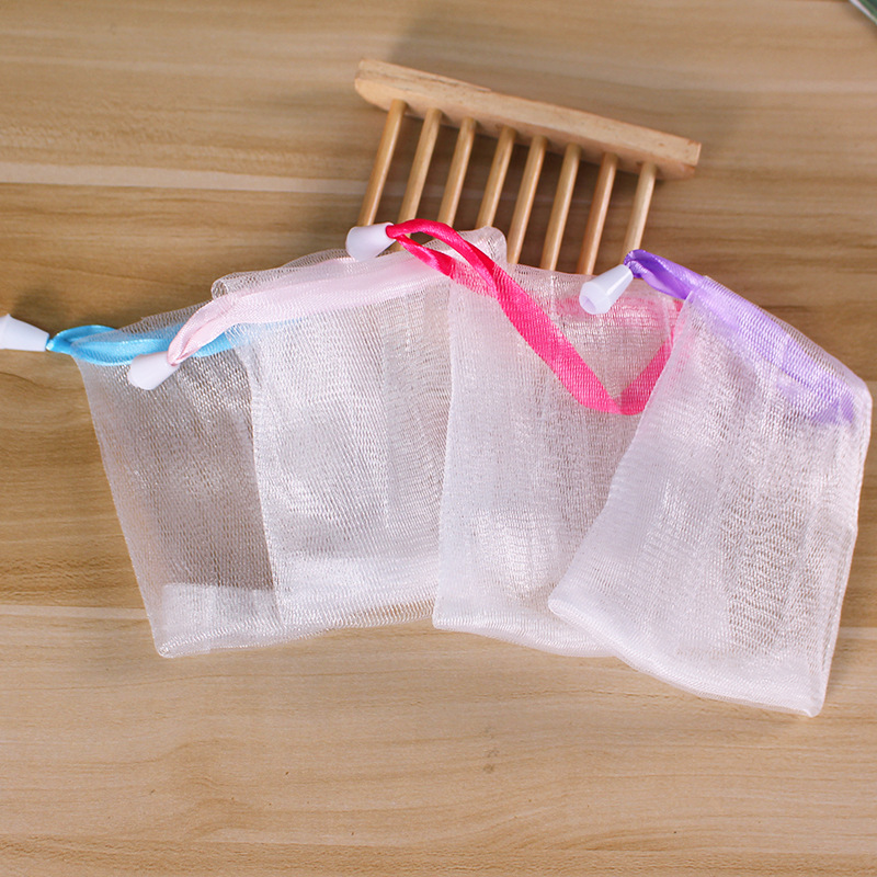 Colorful ribbon foaming net, handmade soap foaming net, facial soap net, foam net bag bathroom supplies wholesale