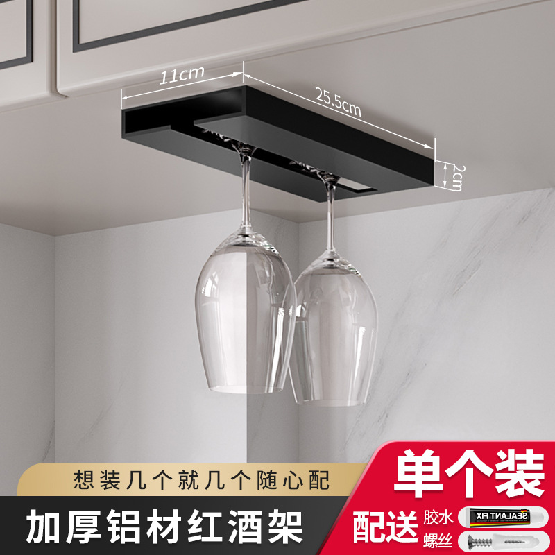 Aluminum Red Wine Glass Rack - Model C Black (Drill-Free / Drillable Dual Use)