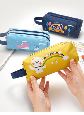 Factory Wholesale Double-Layer Large Capacity Ins High-Endearing Cute Cartoon Pencil Bag for Elementary and Middle School Girls